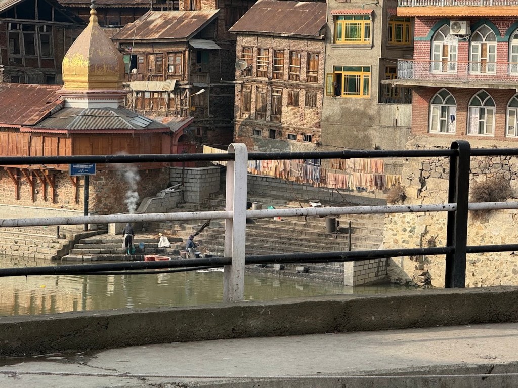 North of Habba Kadal is Fateh Kadal. Fateh Kadal was built in 1500 by Fateh Shah. Old Fateh Kadal was a beautiful wooden footbridge, but it has since been replaced with a narrow metal bridge. One could easily pass the “old” bridge without noticing. In the same way that Habba Kadal has the largest number of Hindu temples, Fateh Kadal is surrounded by the largest number of Muslim shrines (from personal observations). Most of the shrines are incredibly small and likely known only to those in the immediate vicinity.